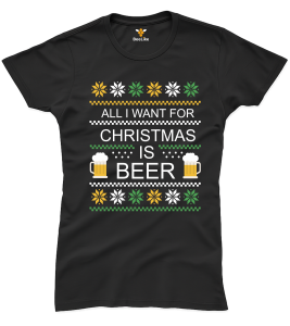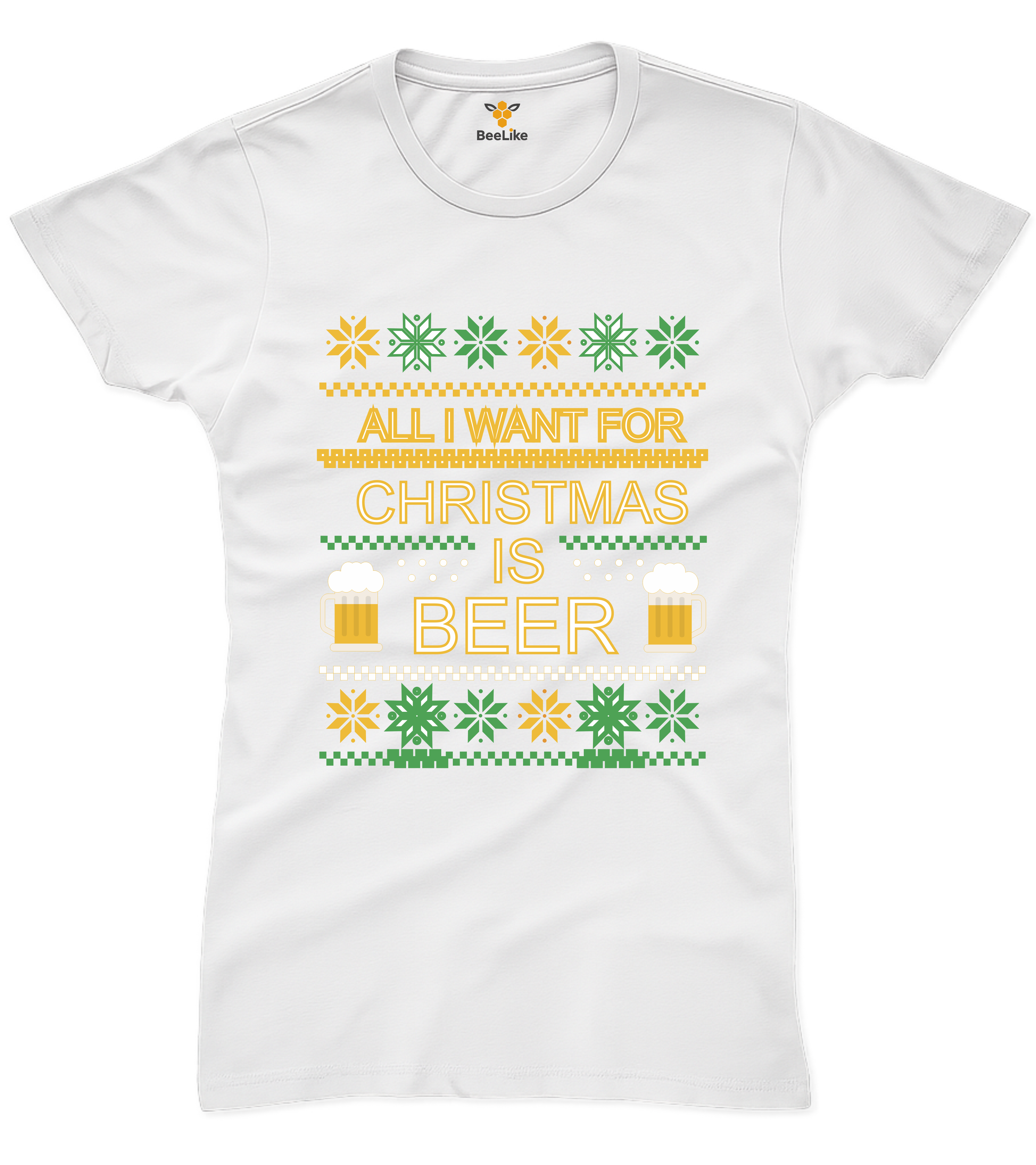 Koszulka damska "All I want for Christmas is beer" – Zimowe życzenie dla prawdziwych miłośniczek piwa!