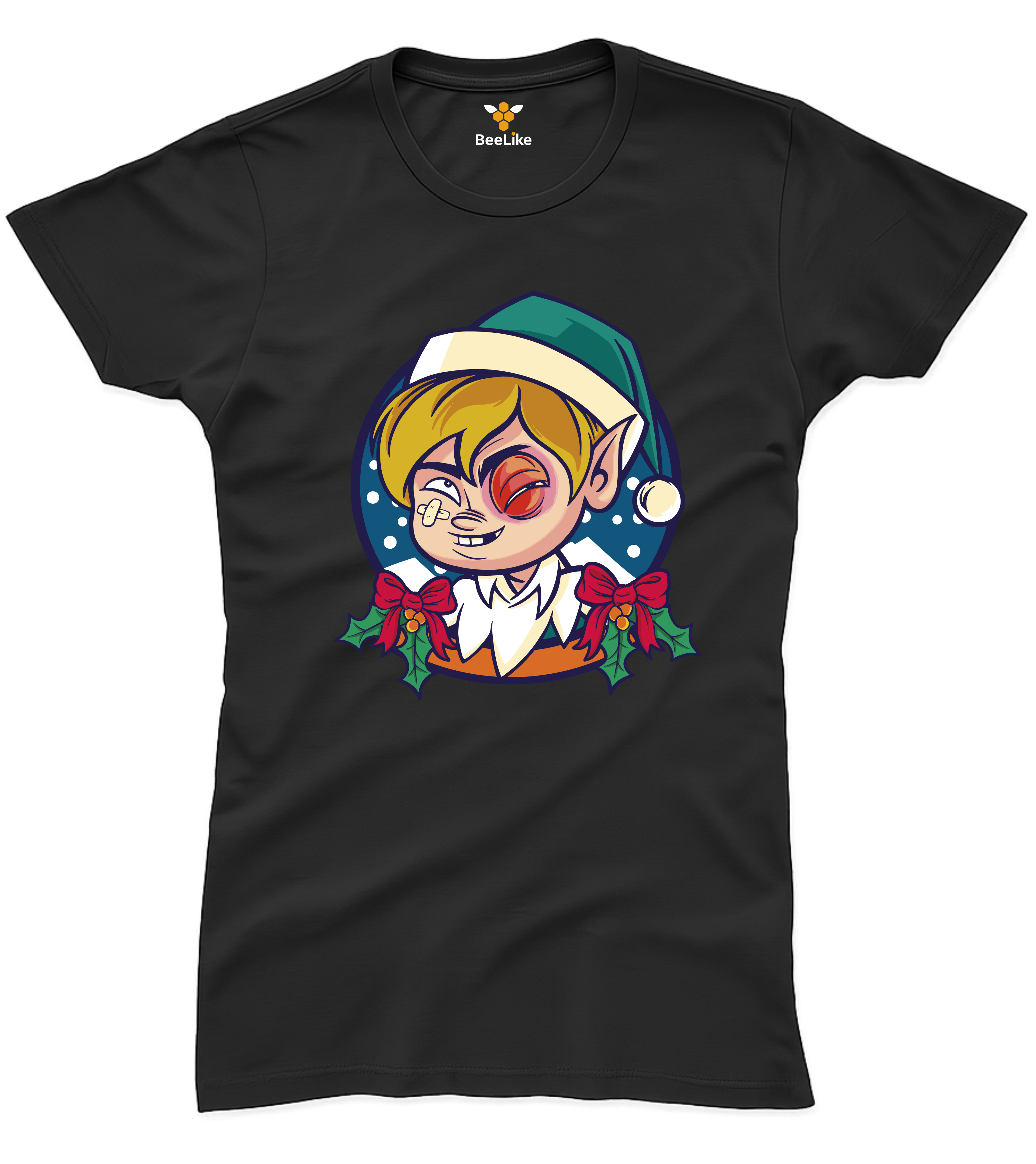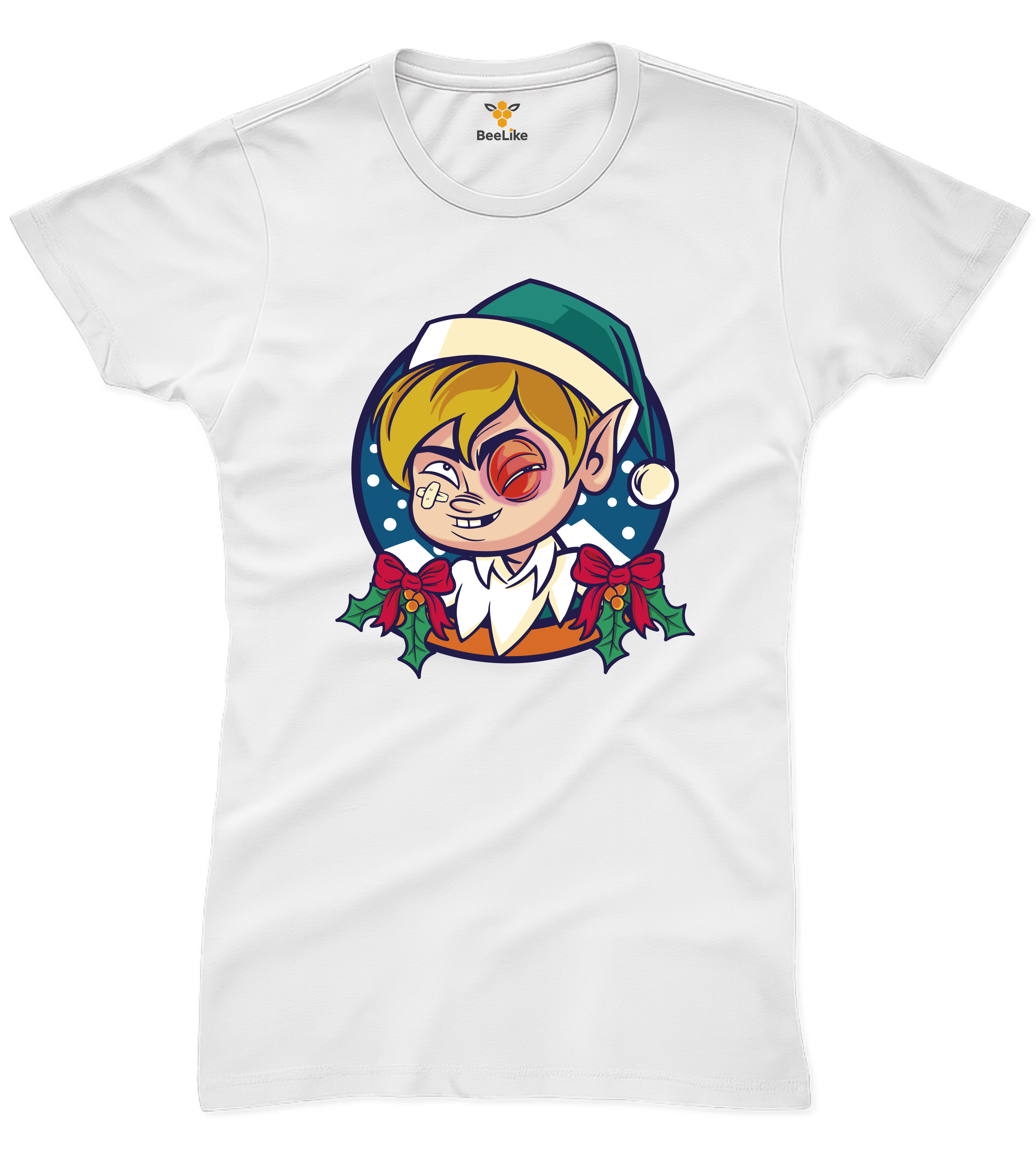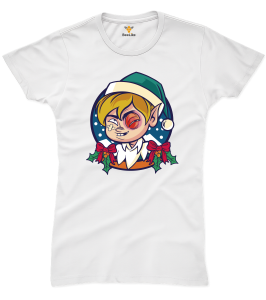 Koszulka damska "Elf z podbitym okiem" to zabawny nadruk z przymrużeniem oka!
