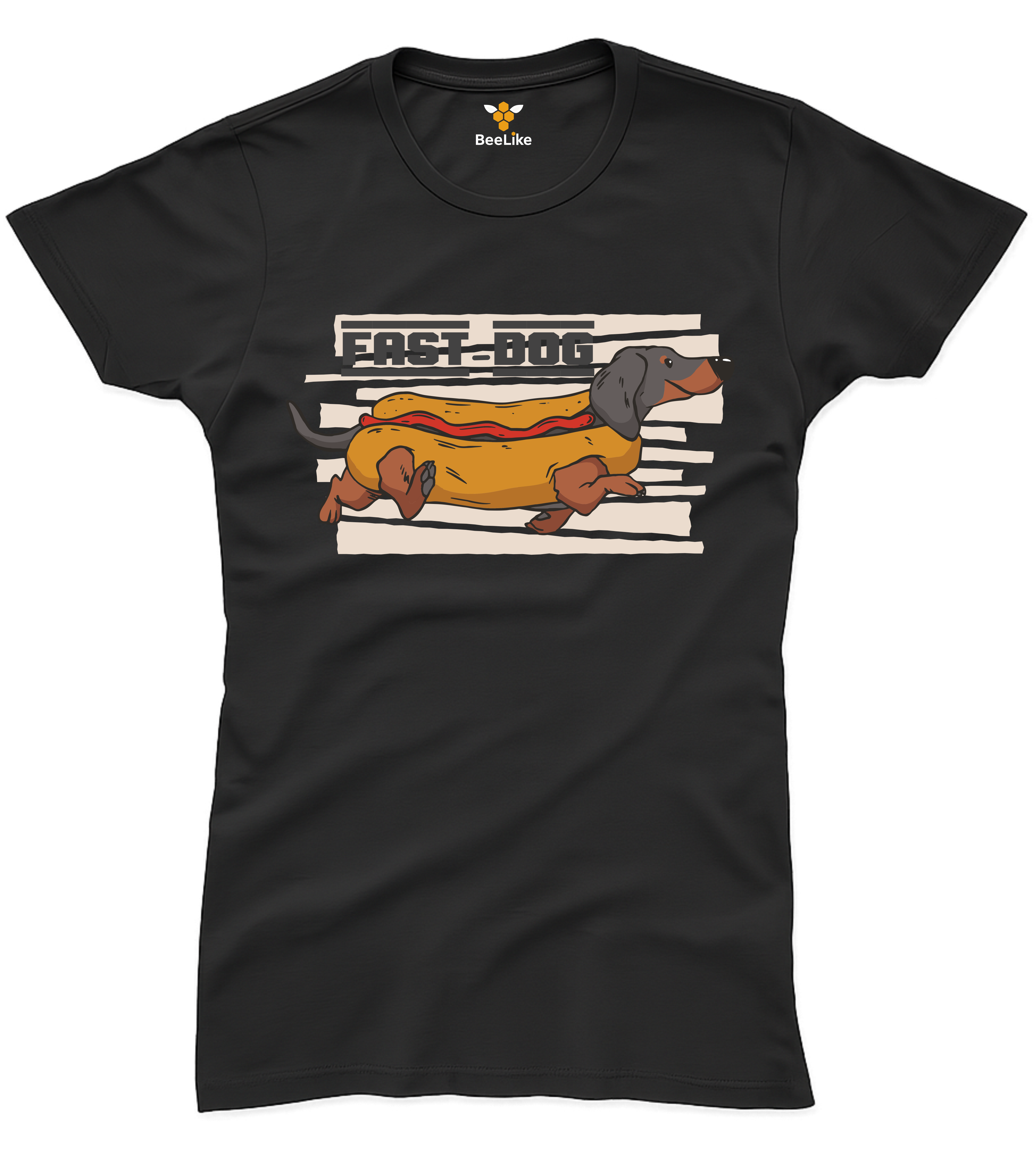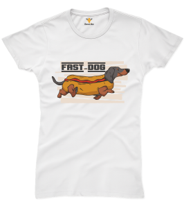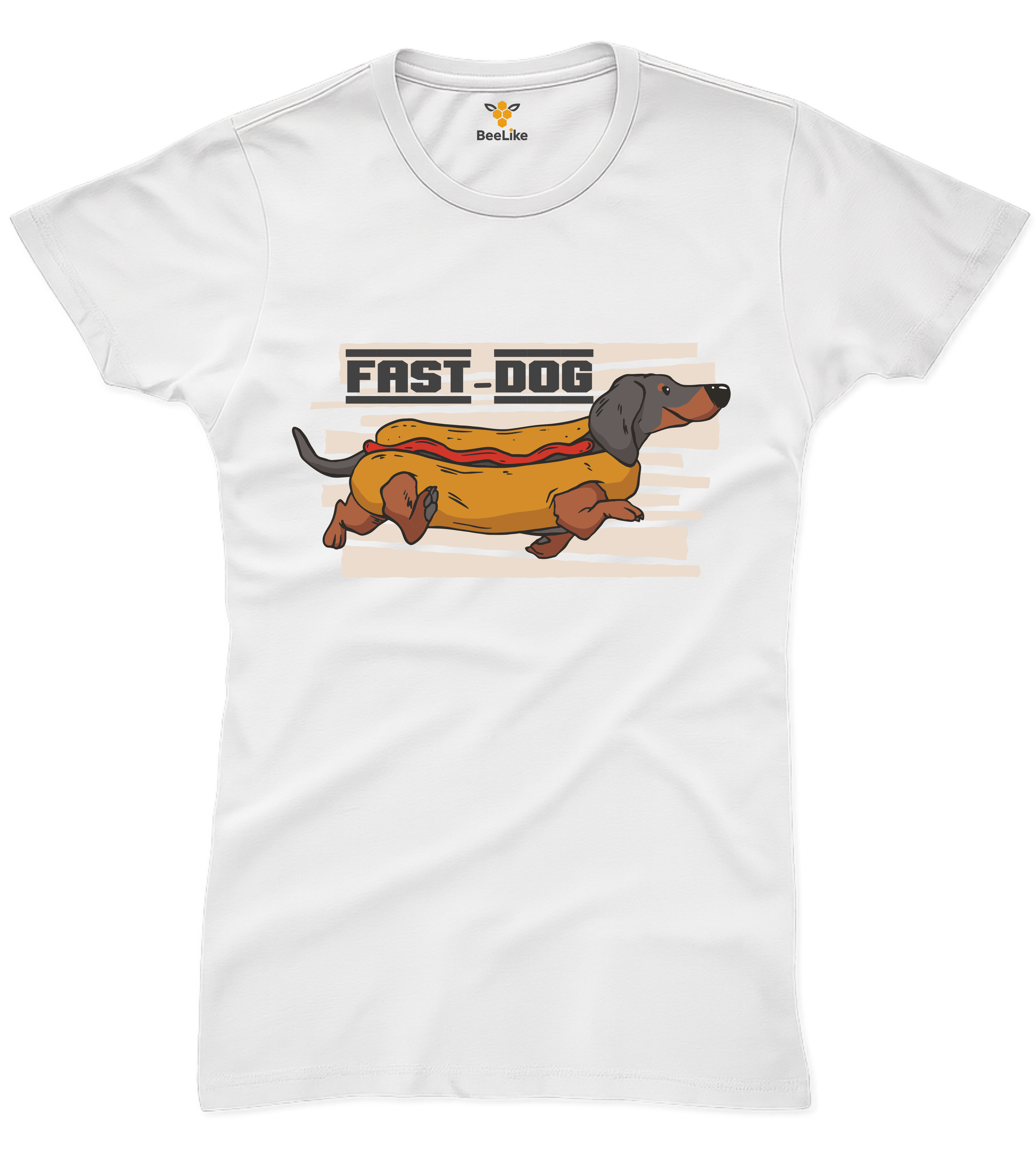 Koszulka damska „FAST-DOG” – jamnik w wersji hot-dog dla fanów dobrego humoru
