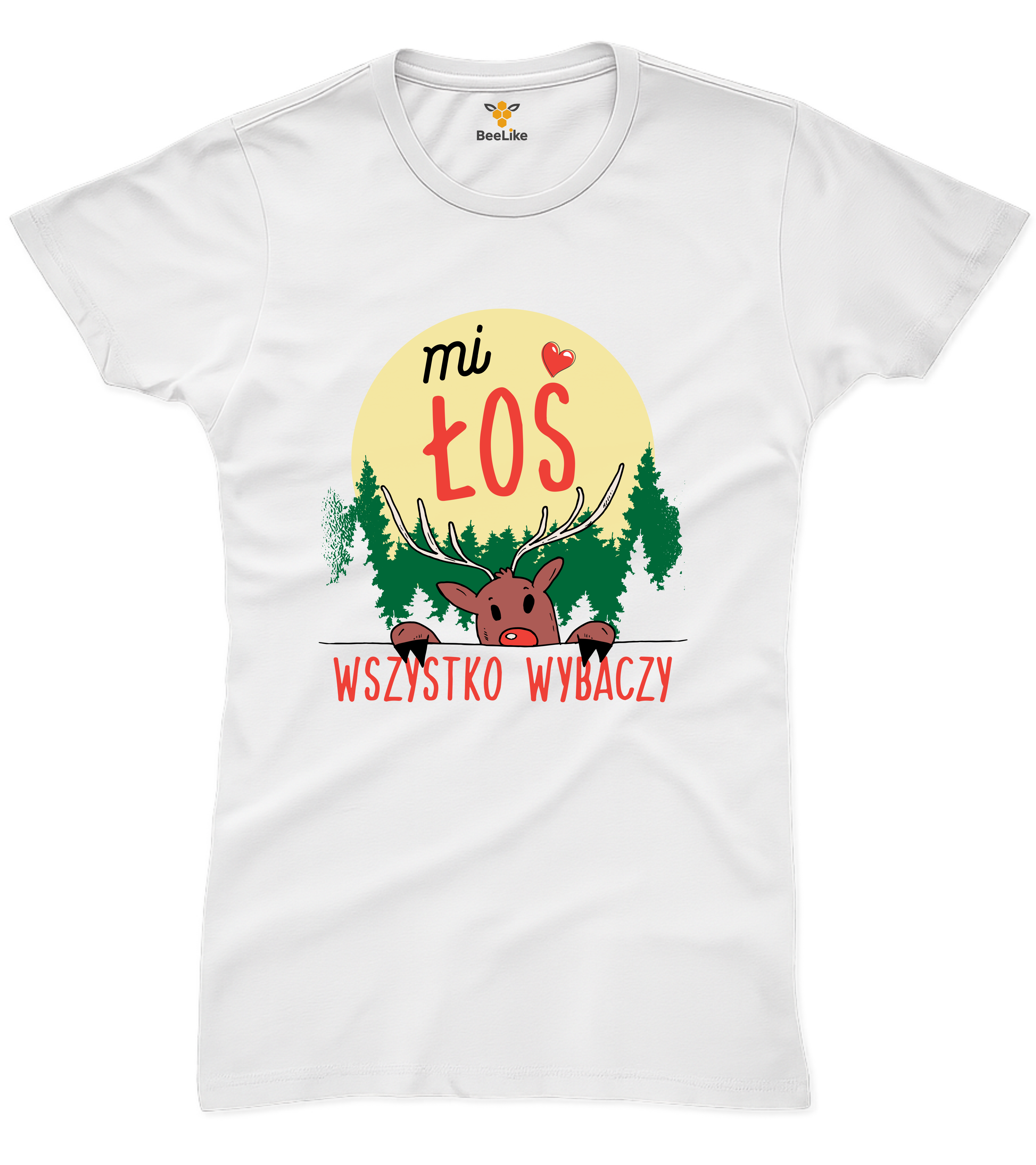 Koszulka damska "Mi łoś wszystko wybaczy" – Bo miłość (i łoś) wszystko wybaczają!
