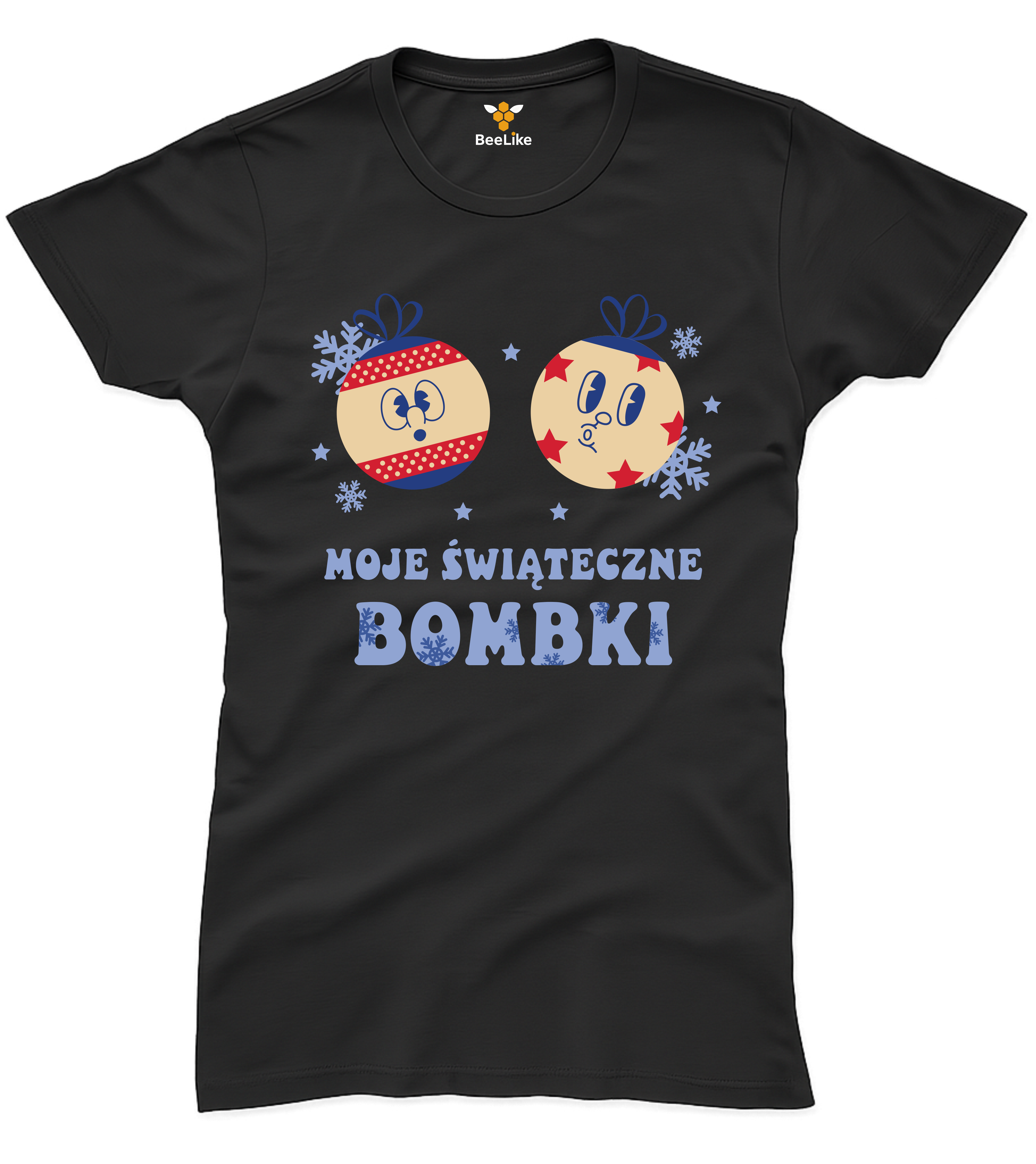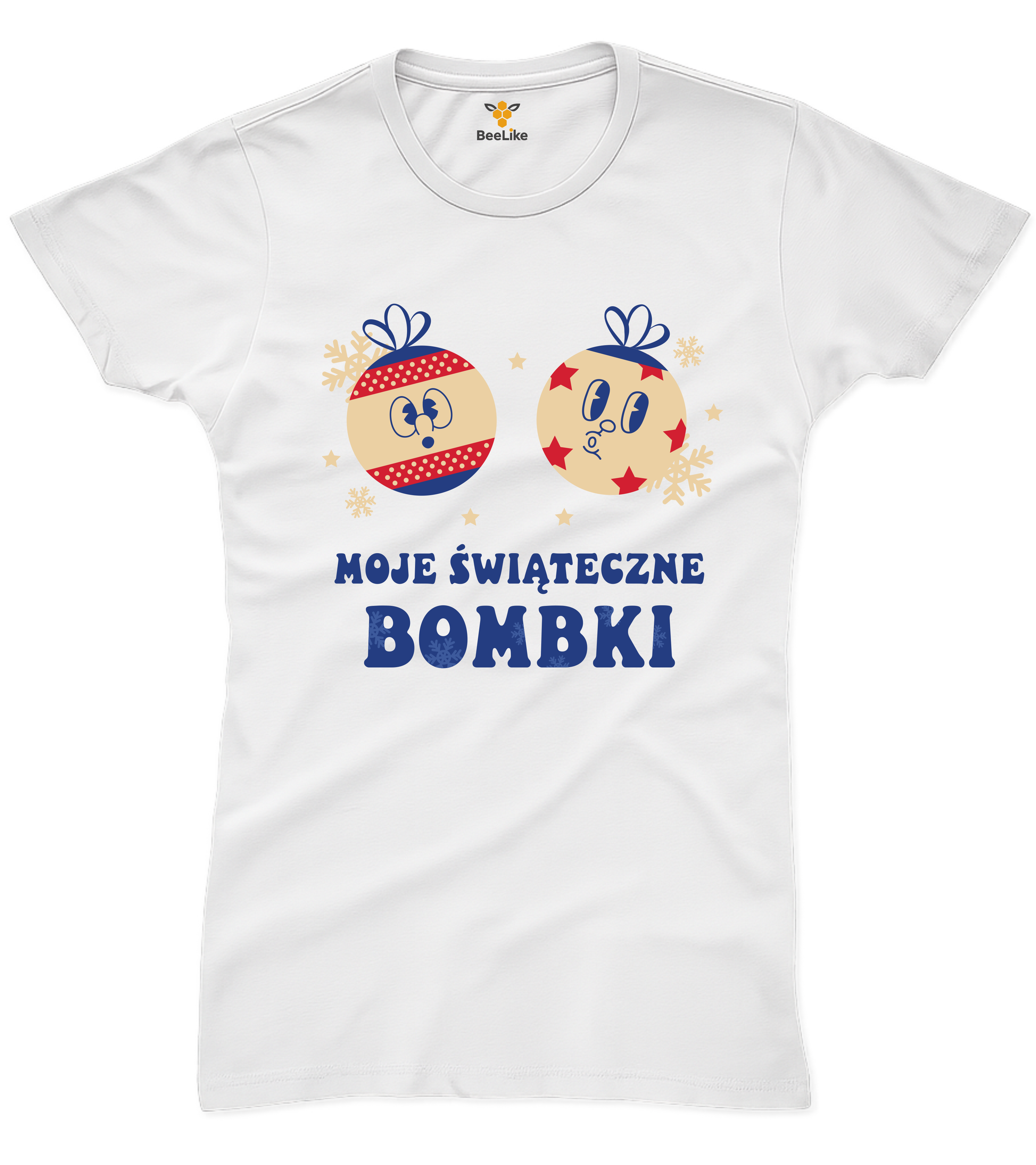 Koszulka damska "Moje świąteczne bombki" – zabawny nadruk z przymrużeniem oka!