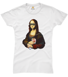 Koszulka Mona Lisa Street Style to oryginalna koszulka z nadrukiem inspirowanym najsłynniejszym dziełem sztuki świata, przedstawionym w nowoczesnej, humorystycznej formie. Mona Lisa w okularach przeciwsłonecznych i z kebabem to symbol połączenia klasyki z miejskim luzem i popkulturą.