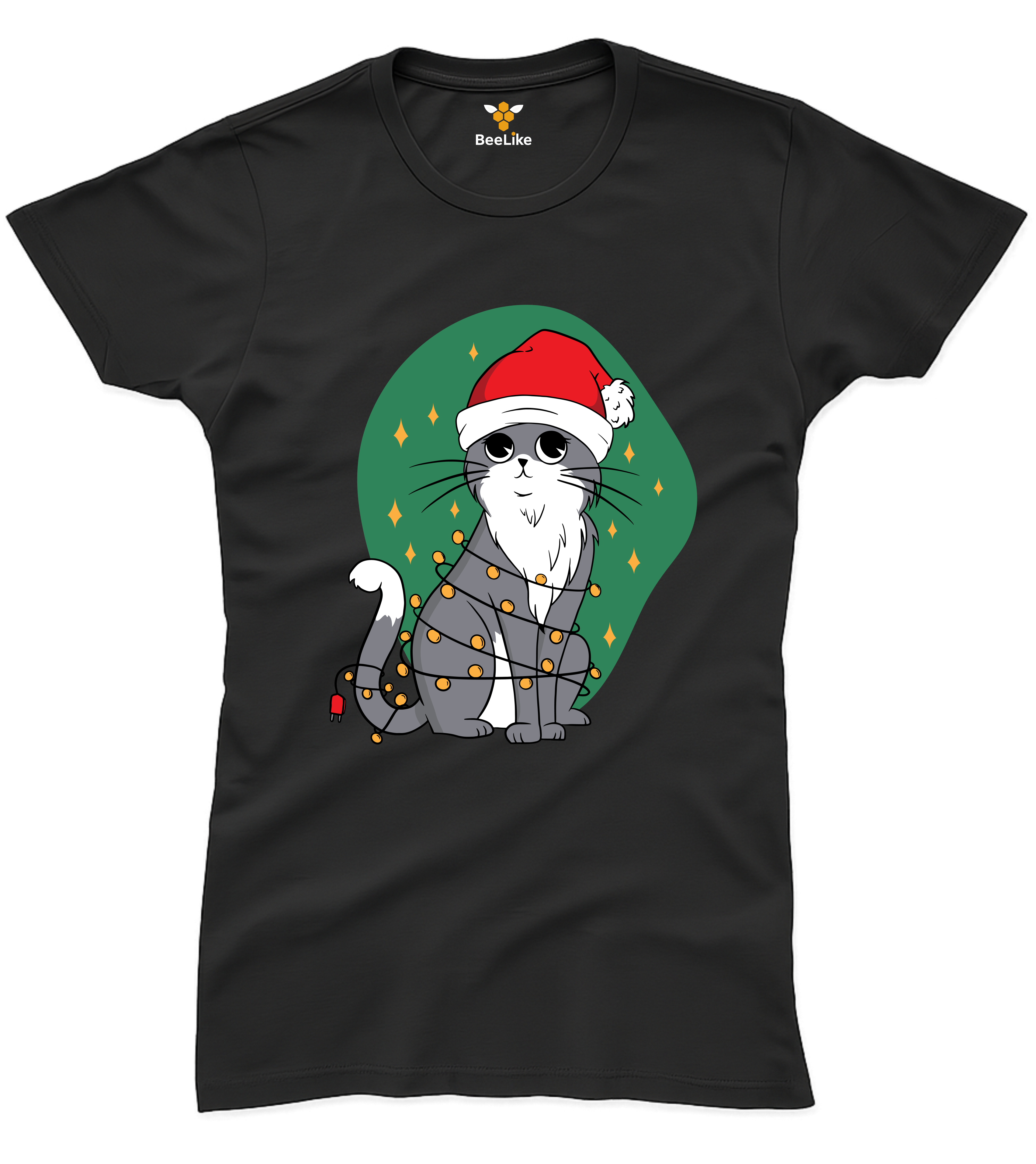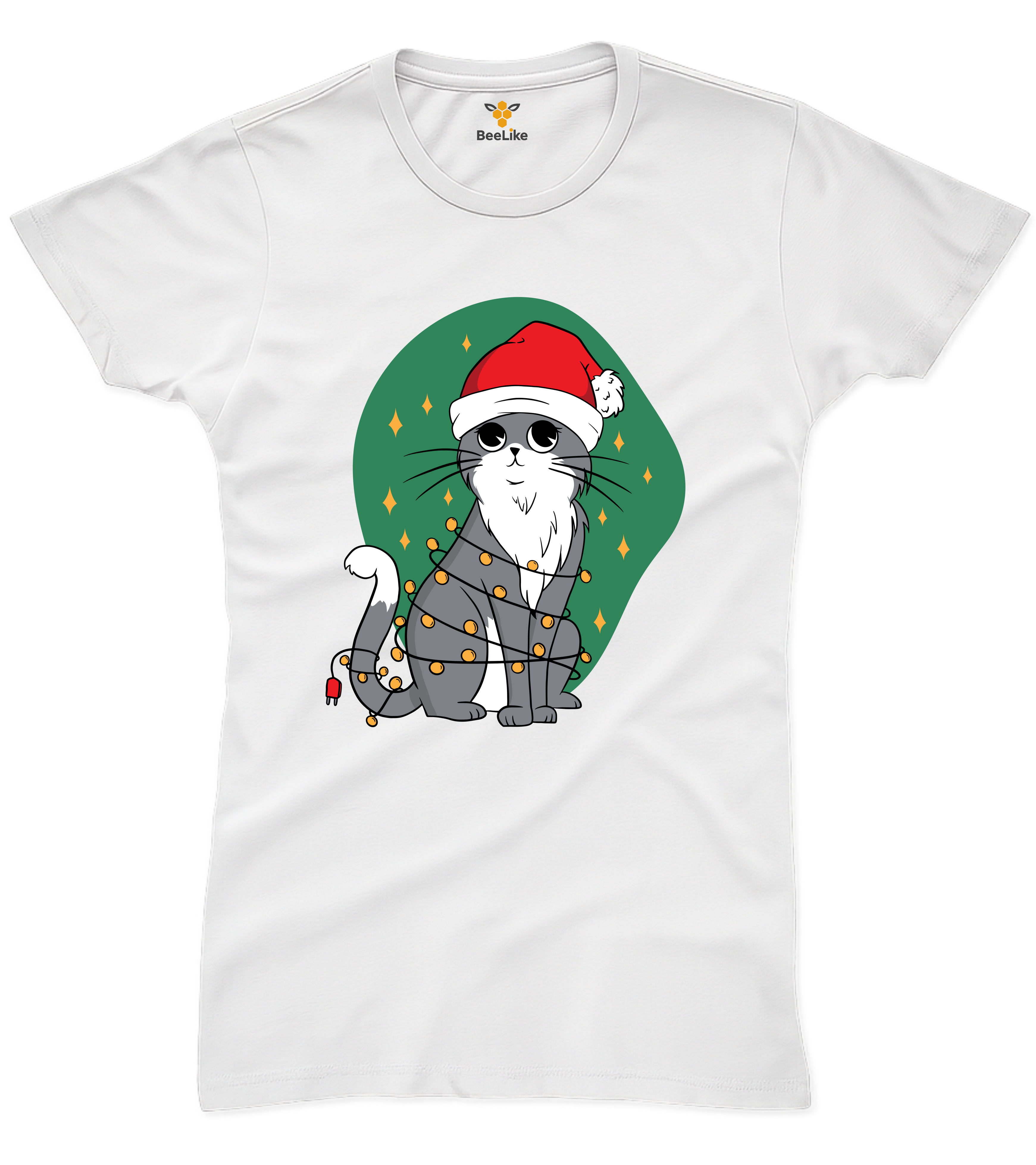 Koszulka damska "Świąteczny kot" – Dla miłośniczek kotów i zimowych świąt!