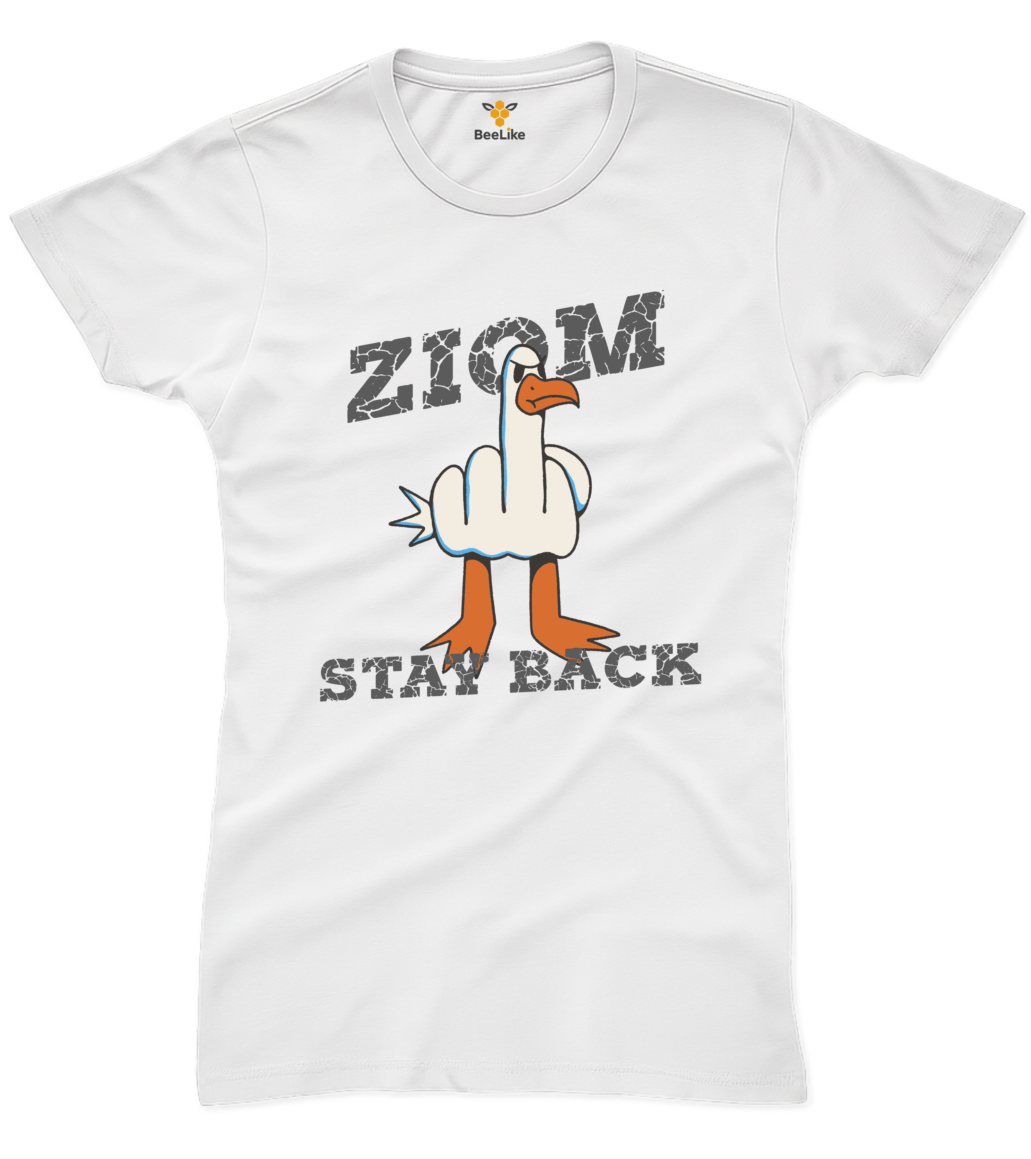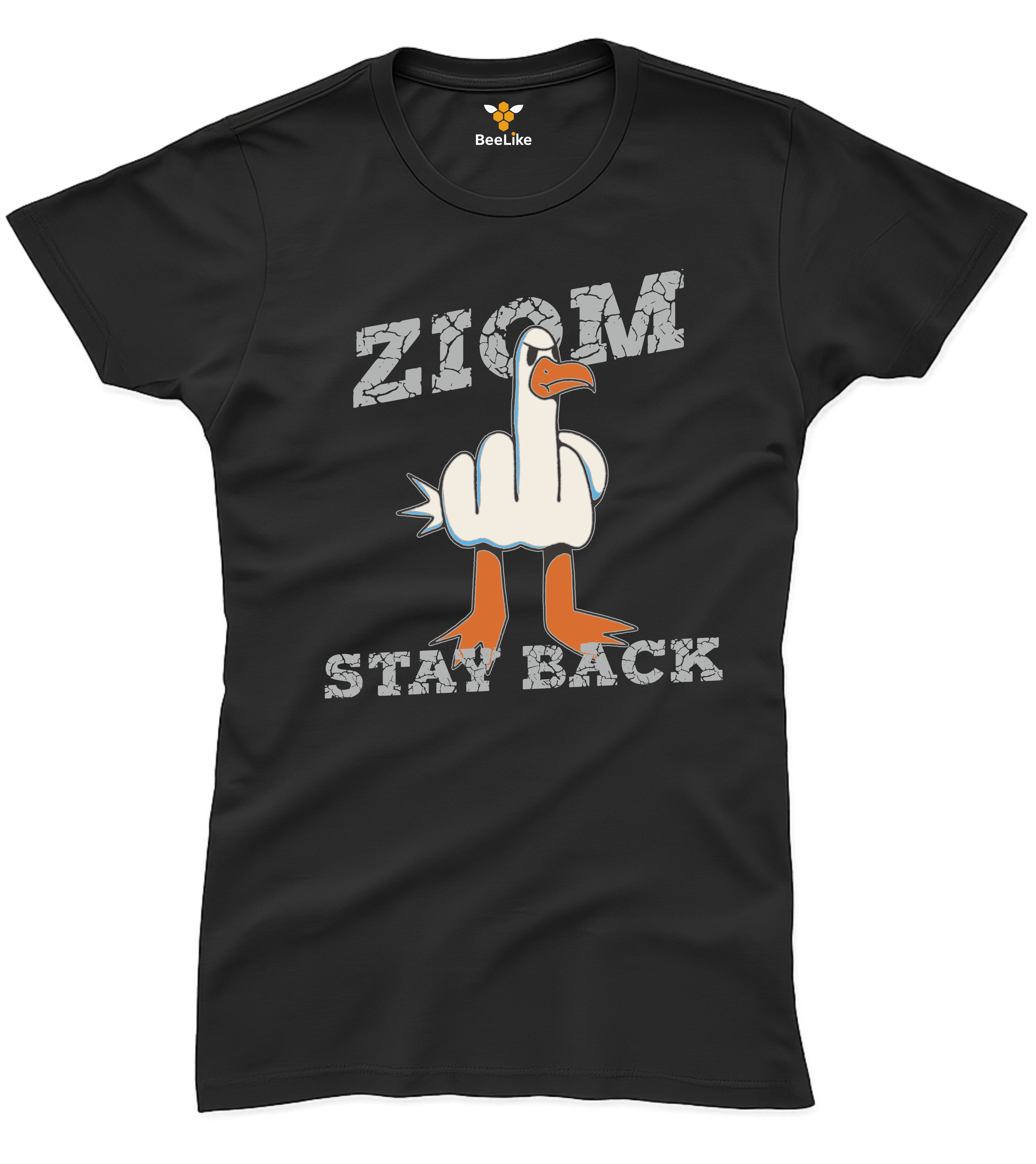 Koszulka damska "Ziom stay back" z humorystyczną mewą to manifest granic osobistych! Zabawny nadruk z ptakiem pokazującym "zostaw mnie w spokoju". ✓ 100% bawełna 170g ✓ Wyprofilowany krój ✓ Rozmiary XS-3XL ✓ Idealny prezent z humorem!