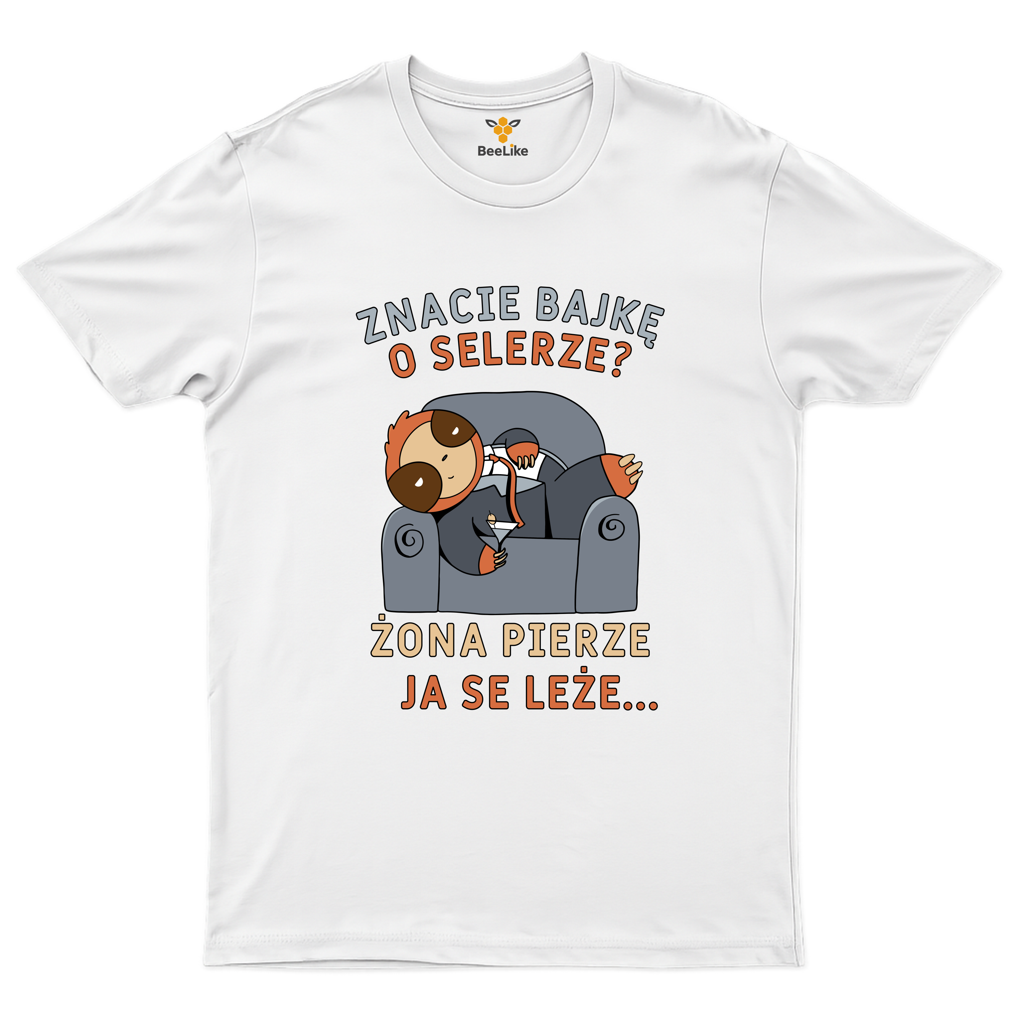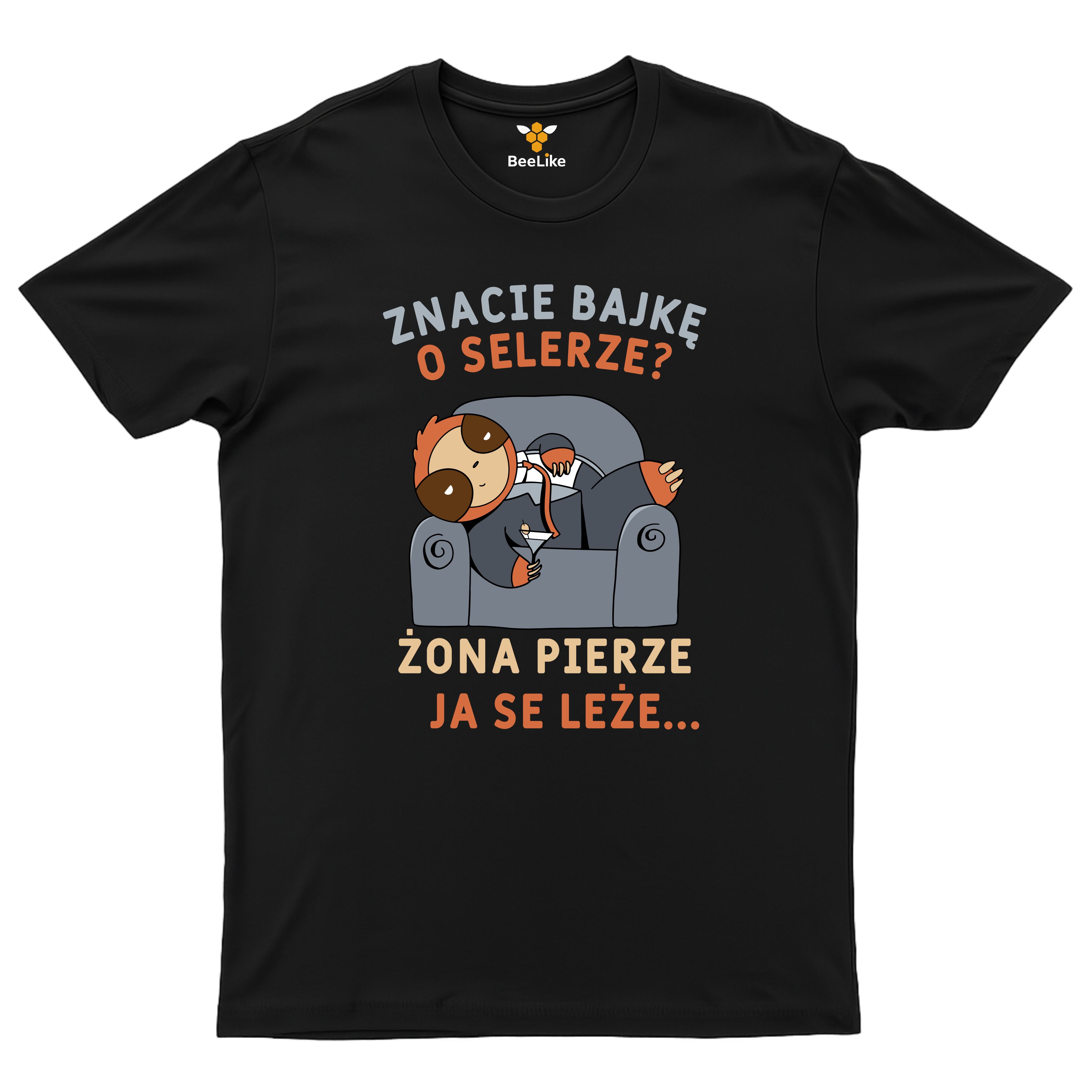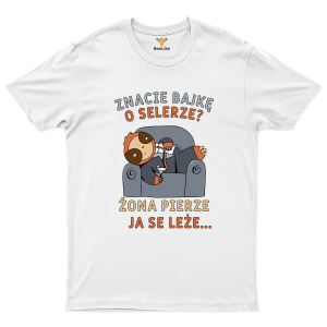 Ta koszulka to idealna opcja dla kobiet, które potrafią z humorem i dystansem podejść do życia codziennego i relacji! Zabawna gra słów "Znacie bajkę o selerze? Żona pierze ja se leżę..." to doskonały sposób na pokazanie, że masz świetne poczucie humoru i nie bierzesz życia zbyt serio.