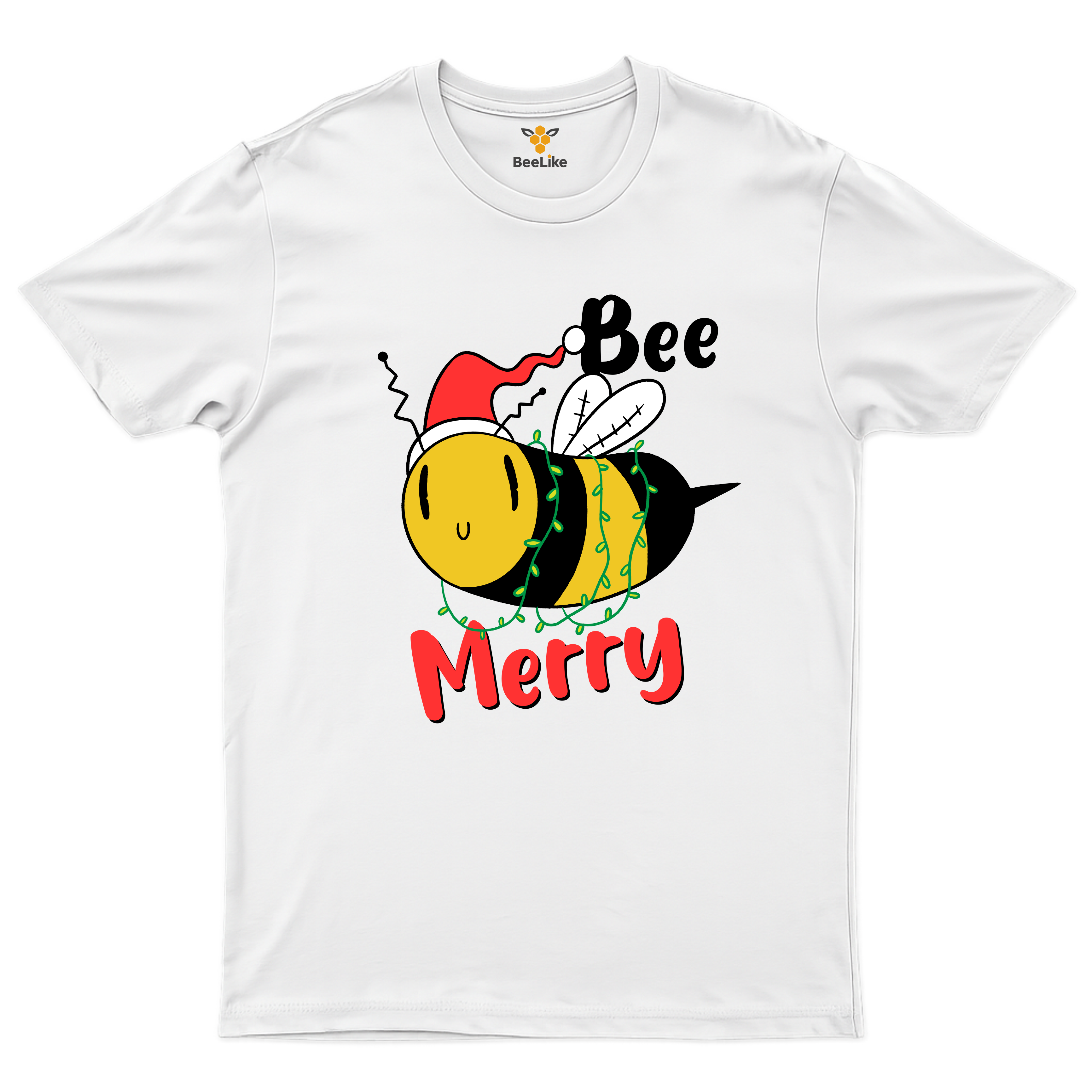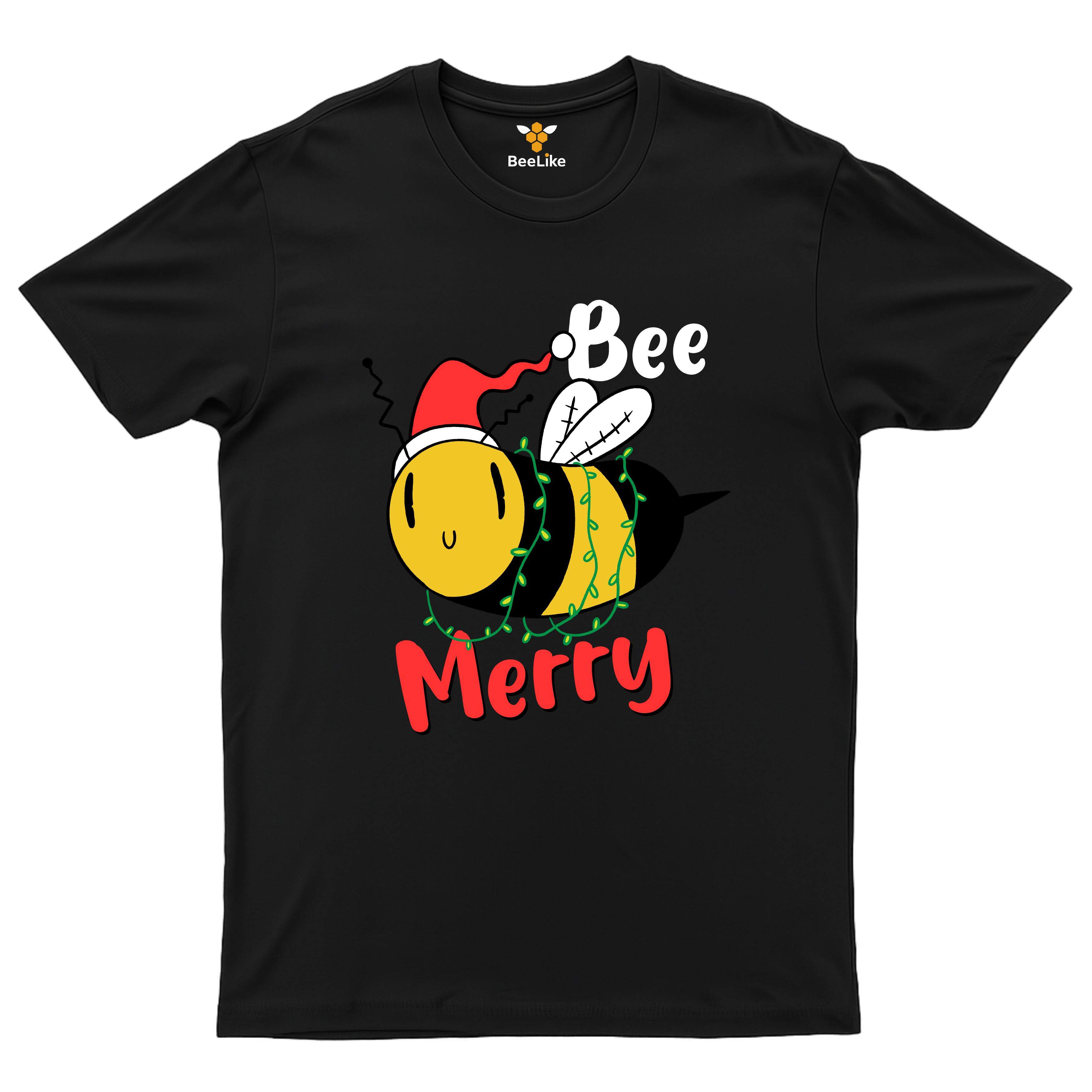 Koszulka męska "Bee Merry" to zabawna gra słowna na zimowe święta rodzinne!