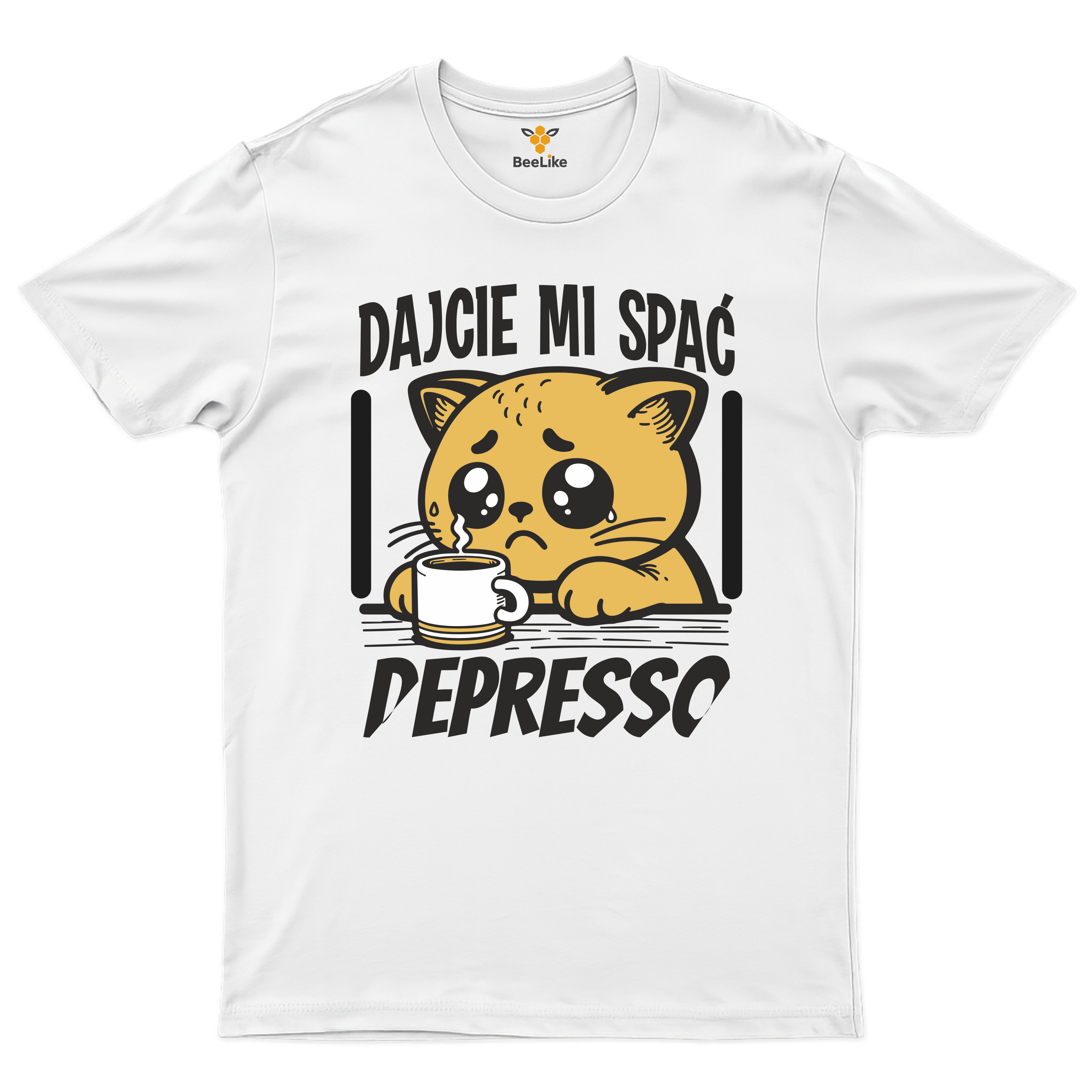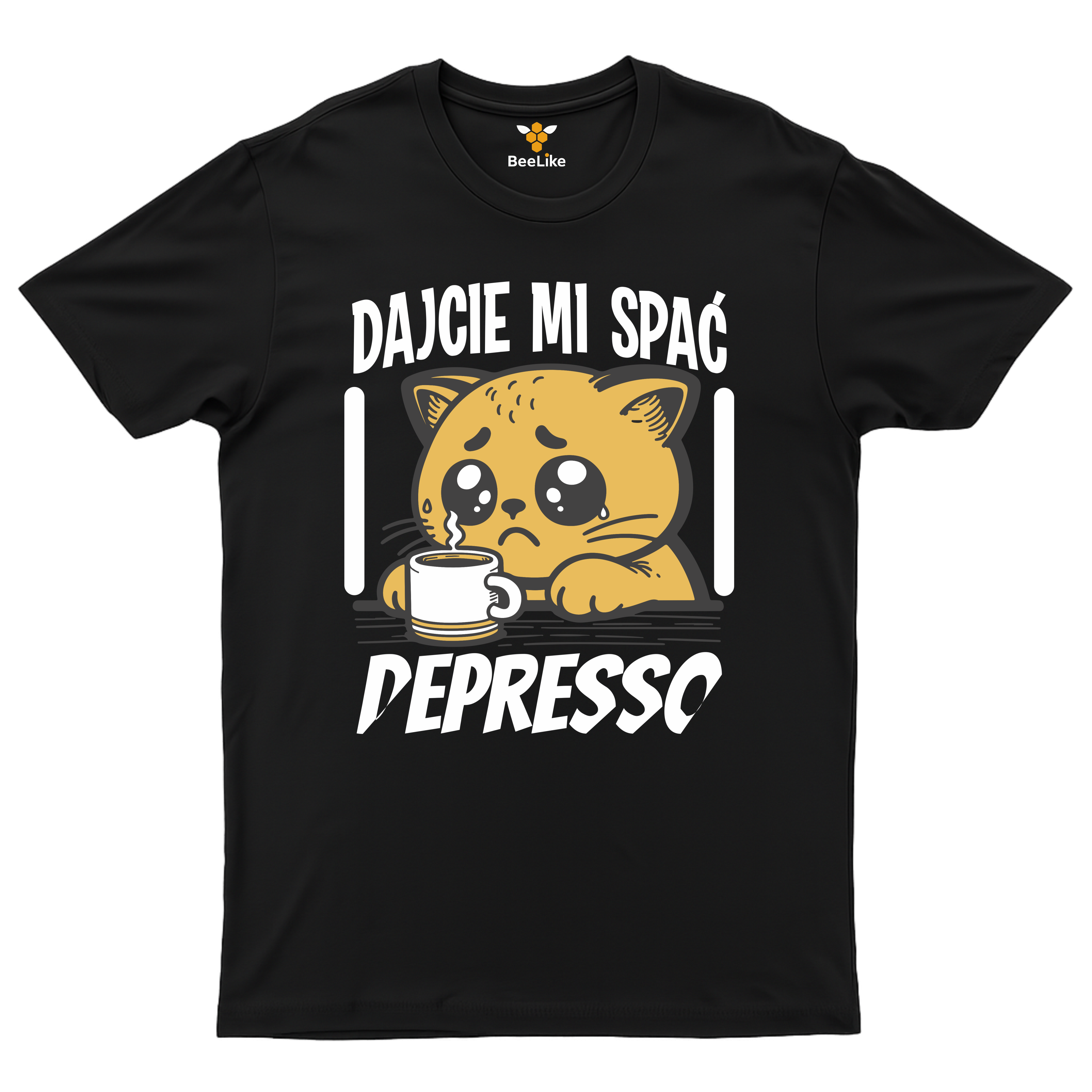 Koszulka meska "Dajcie mi spać - Depresso" – Idealne dla kawowych leniuszków.