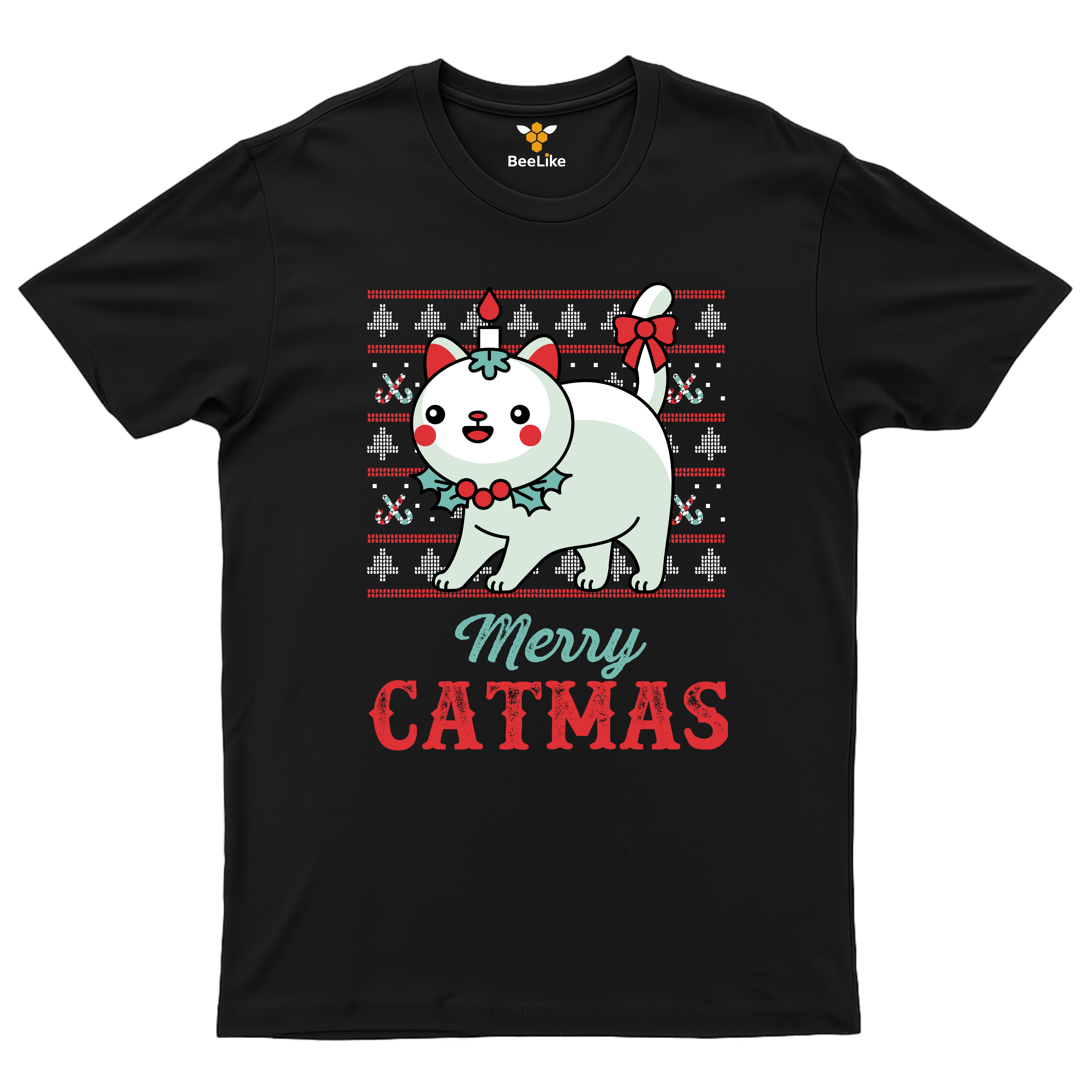 Koszulka męska "Merry Catmas" – Koci świąteczny hit dla każdego kociarza!