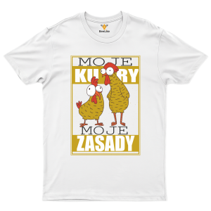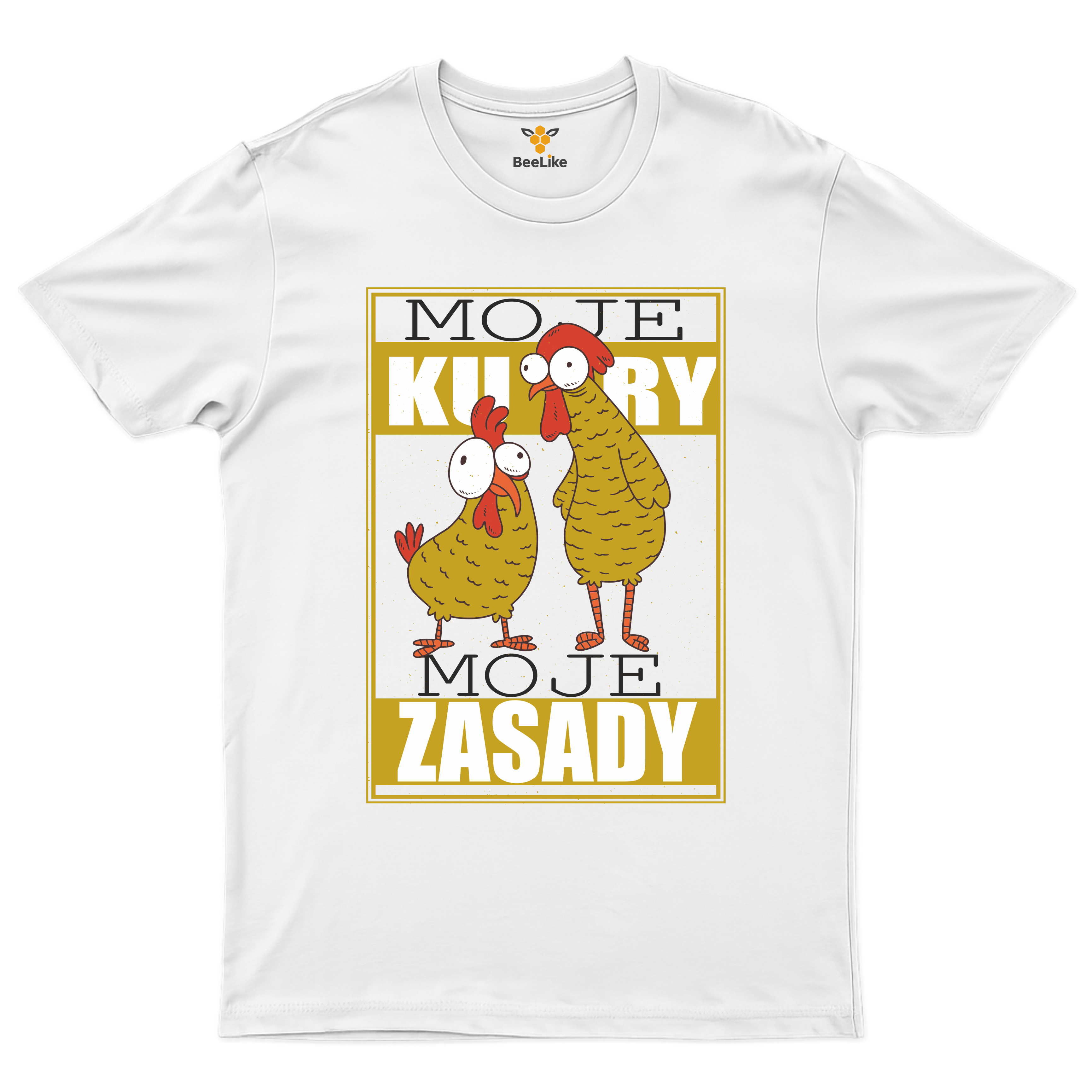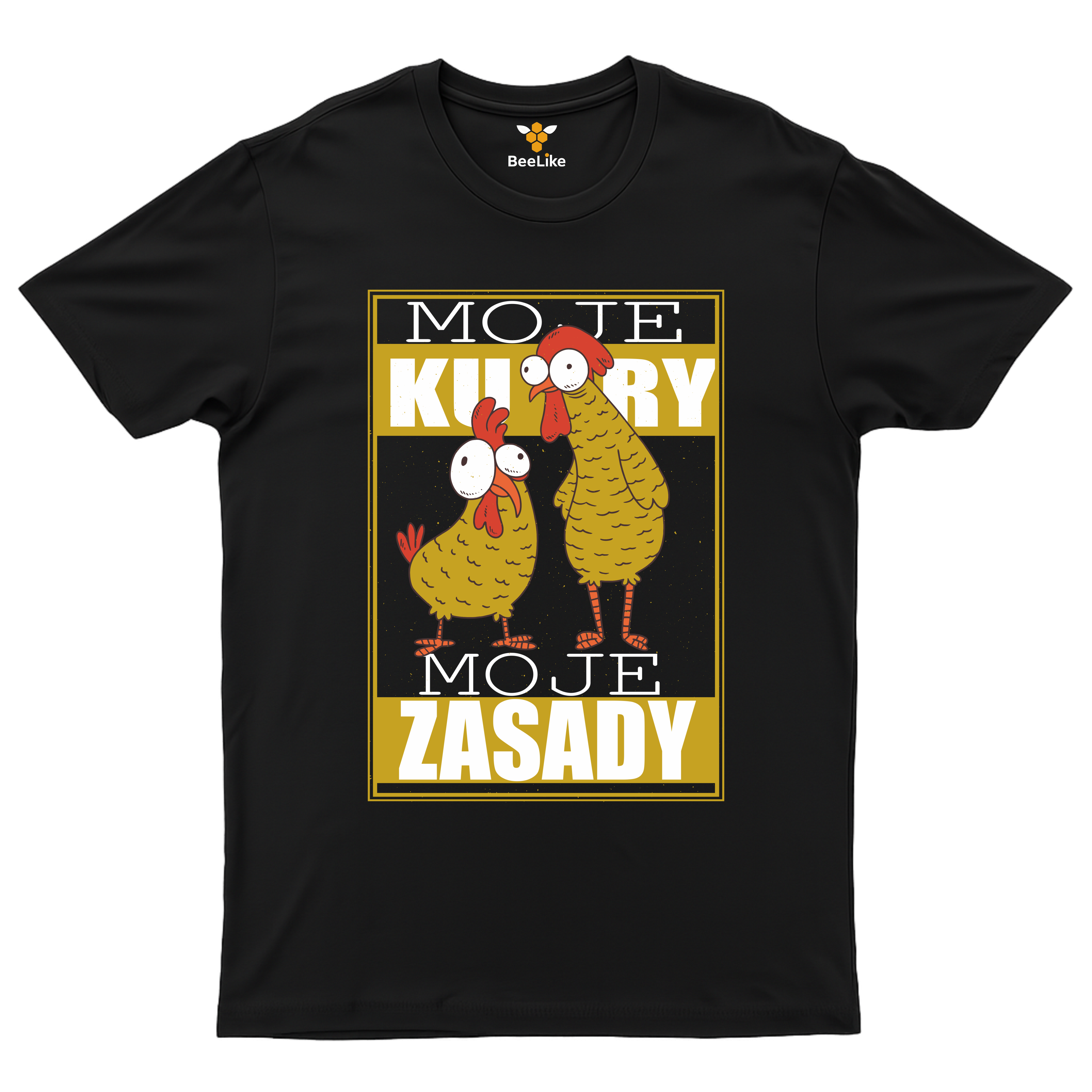 Koszulka męska "Moje kury moje zasady" – Dla panów rządzących kurnikiem!