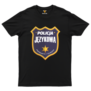 Koszulka „Policja Językowa” to zabawny, ale jednocześnie stylowy sposób na pokazanie dystansu, inteligencji i zamiłowania do poprawnej polszczyzny. Kultowy emblemat w formie tarczy policyjnej jasno komunikuje jedno: