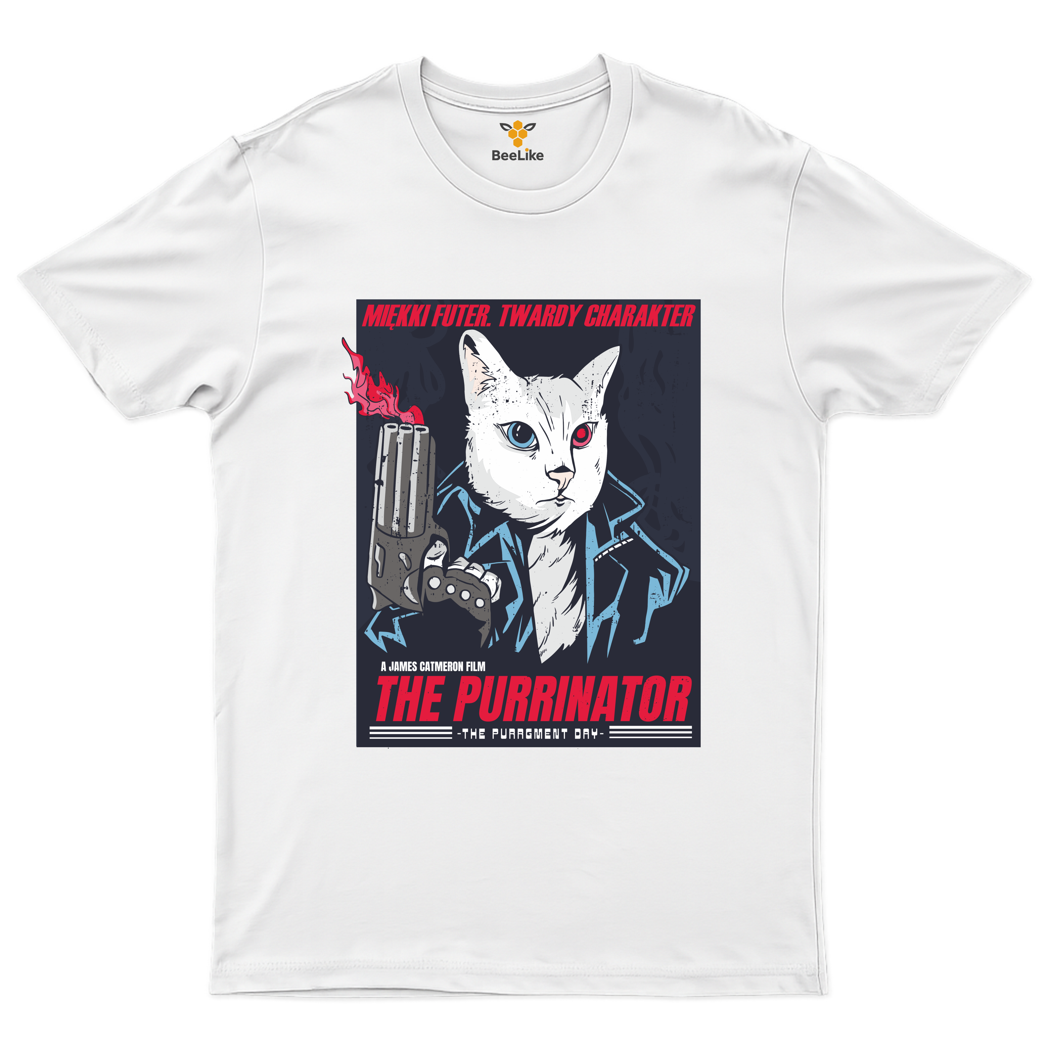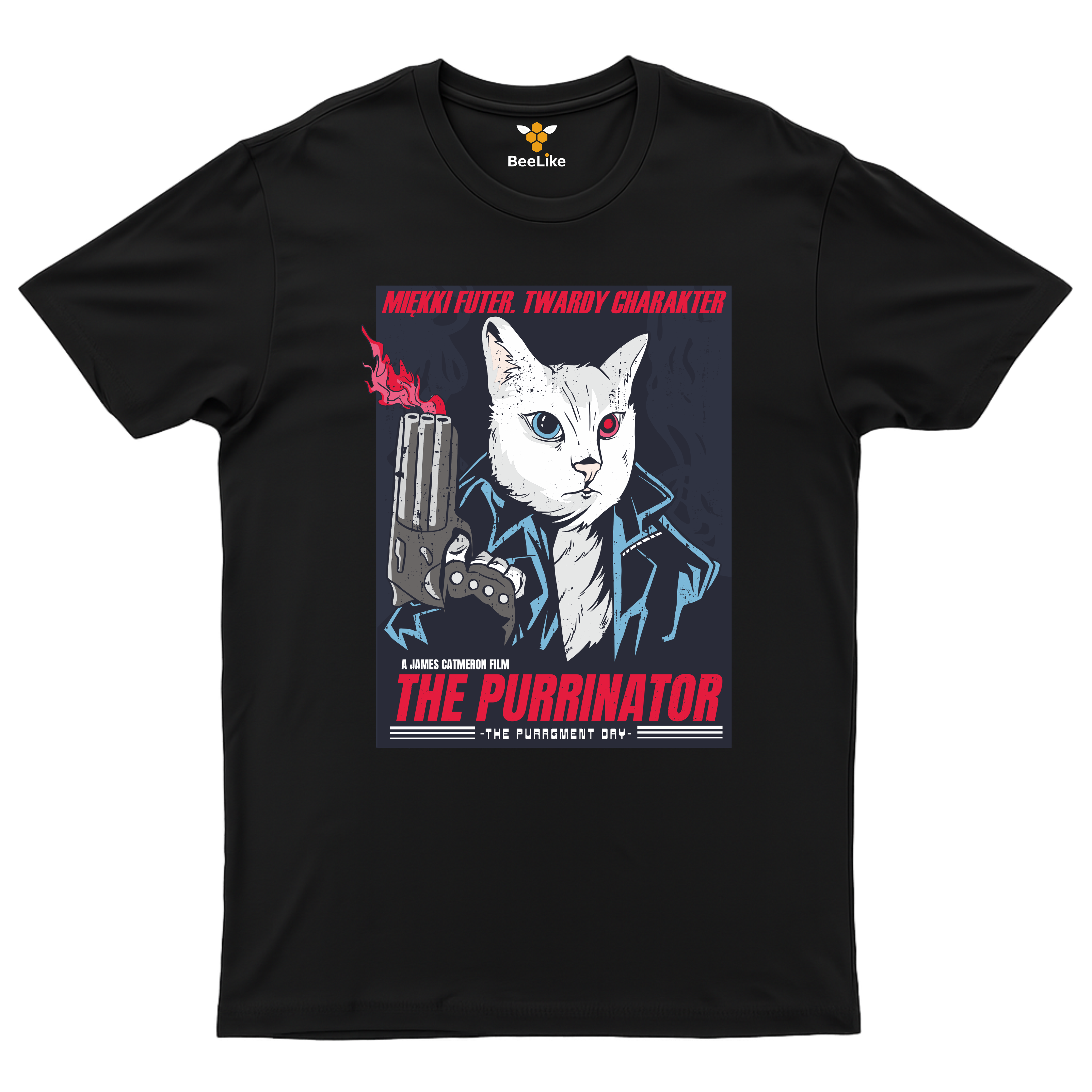 Koszulka męska „THE PURRINATOR” – Miękki futer. Twardy charakter.