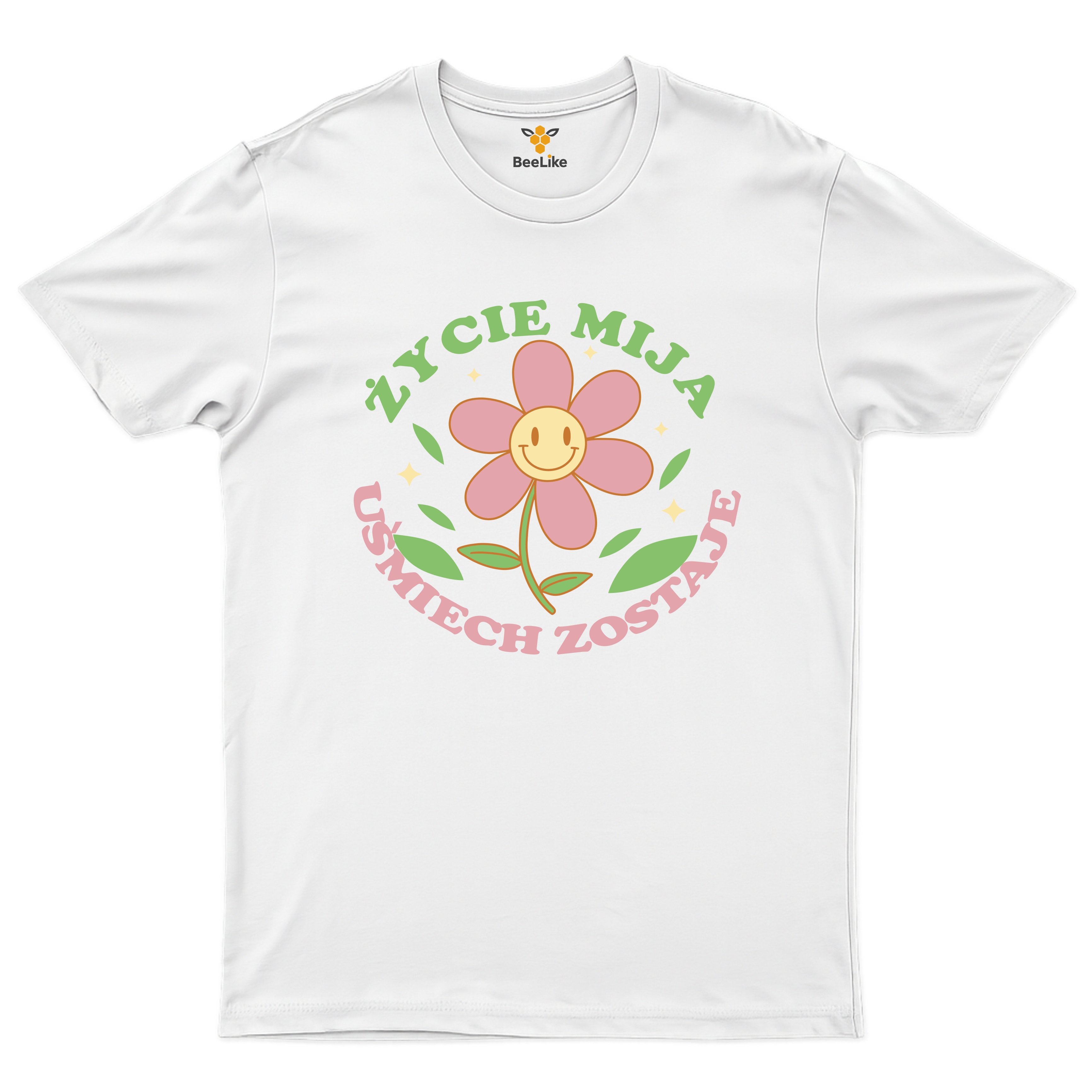 Ta koszulka to manifest pozytywnego podejścia do życia i przekonania, że najważniejszy jest uśmiech. "Życie mija uśmiech zostaje" z uroczym uśmiechniętym kwiatkiem to przypomnienie, że choć życie jest ulotne, to radość i pozytywne wspomnienia zostają na zawsze. Jeśli cenisz sobie radość życia i wiesz, że uśmiech to najlepsza filozofia – ten t-shirt jest dla Ciebie!